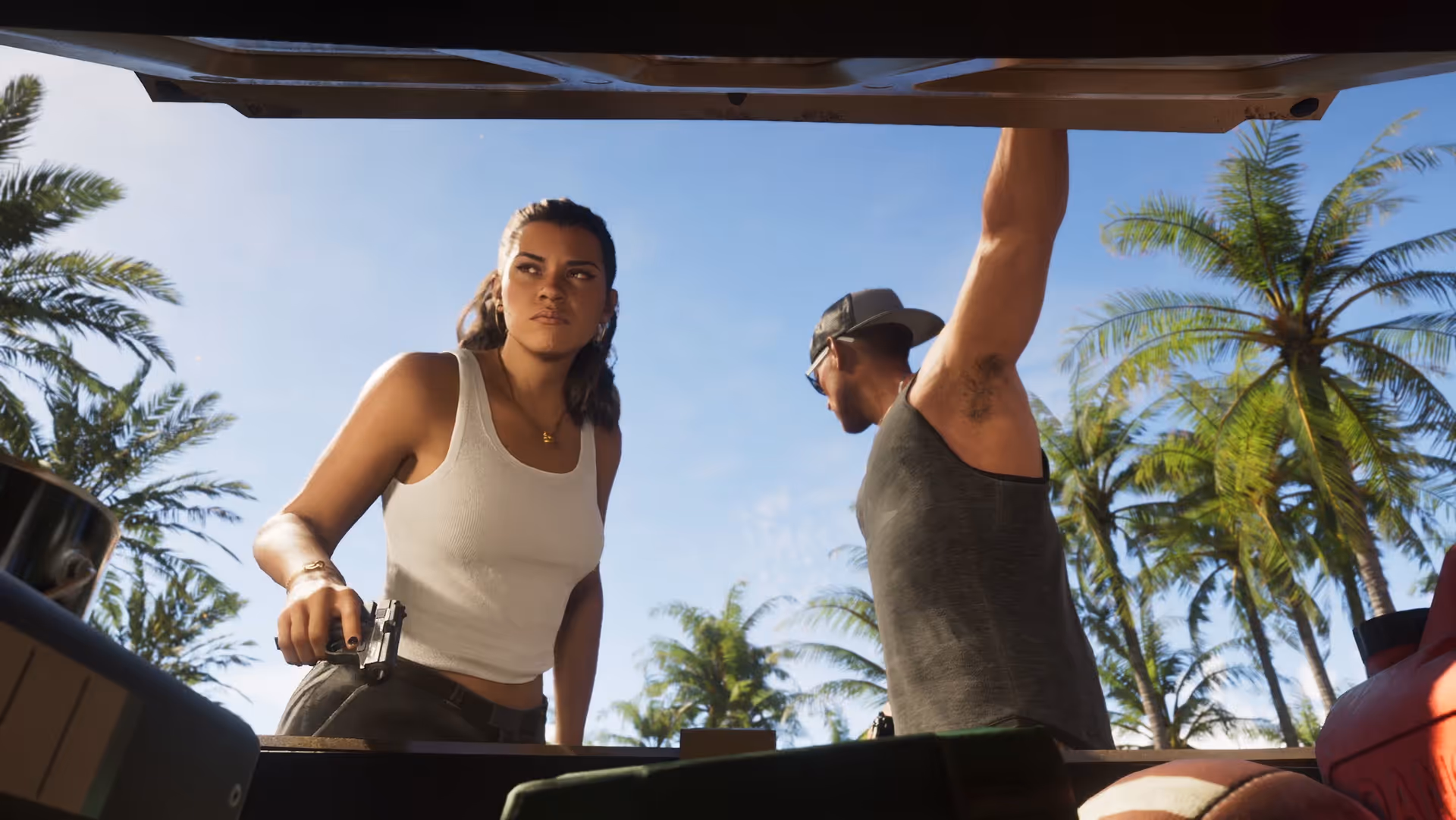 On the official GTA 6 announcement cover, the couple’s personal car shows bullet holes, reminiscent of Bonnie and Clyde’s ambushed vehicle.