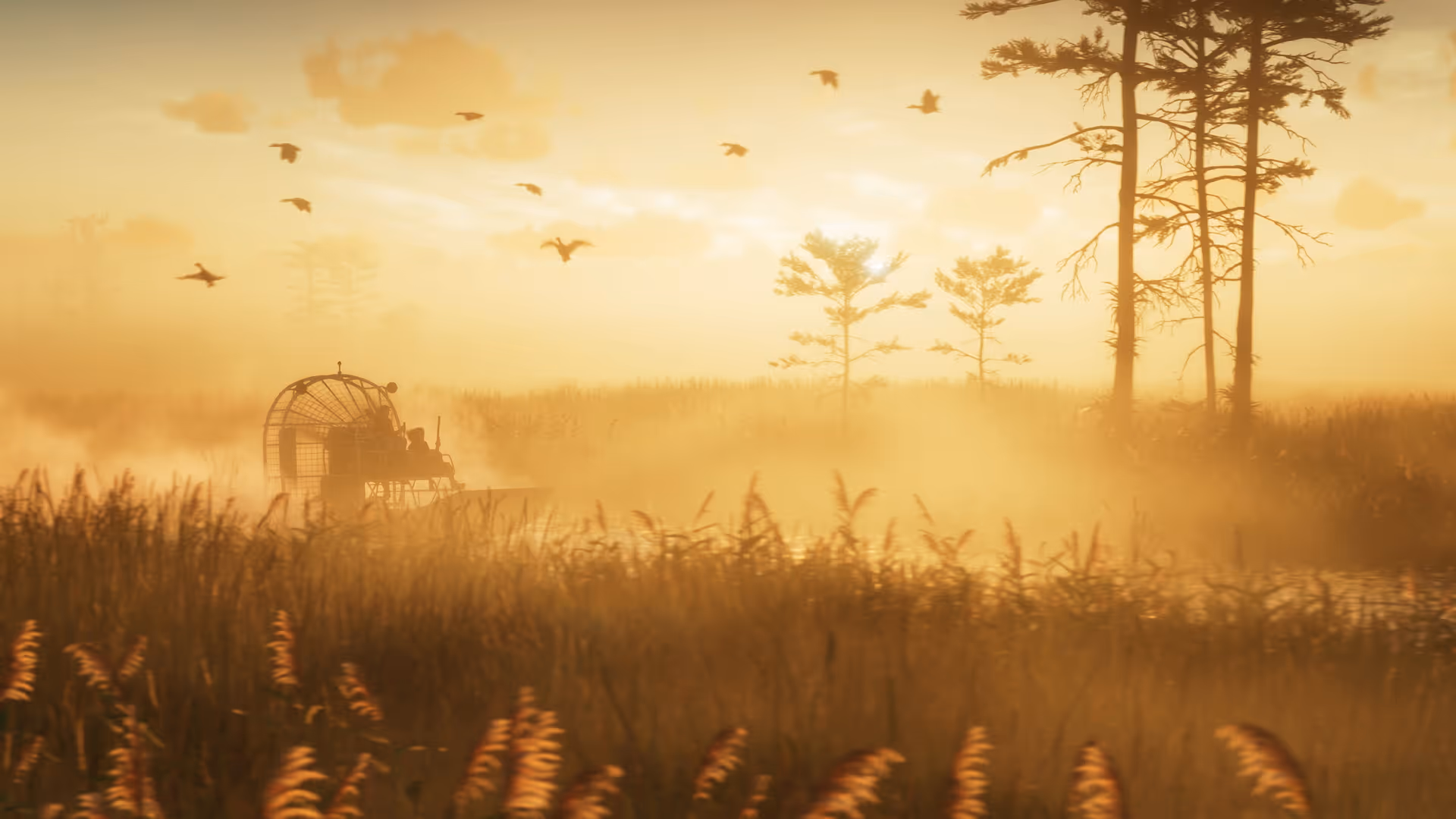 Grassrivers was indirectly referenced in GTA 4 through in-game websites, including a Vice City travel advertisement and a post about a tourist smuggling a crocodile from the city’s wetland border to Liberty City. The region later appeared officially in the first trailer for GTA 6, showing an airboat crossing the marshes and a large flamboyance of flamingos alongside multiple alligators.
